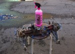 Mietin pitkään miten auton saisi helpoiten puhtaaksi. Normaalitilanteessa puhdistelisin purkaessani osa kerrallaan harjalla ja liinalla, mutta tässä tapauksessa (ks. kuvat) päädyin tavoilleni varsin erilaiseen lähestymistapaan (ja halusin päästä kokeilemaan paljon kehuttua Muc-Off pesuainetta, josta varsinkin prätkäkuskit tykkä) eli liuotinpesuainetta + lämmintä painevettä.