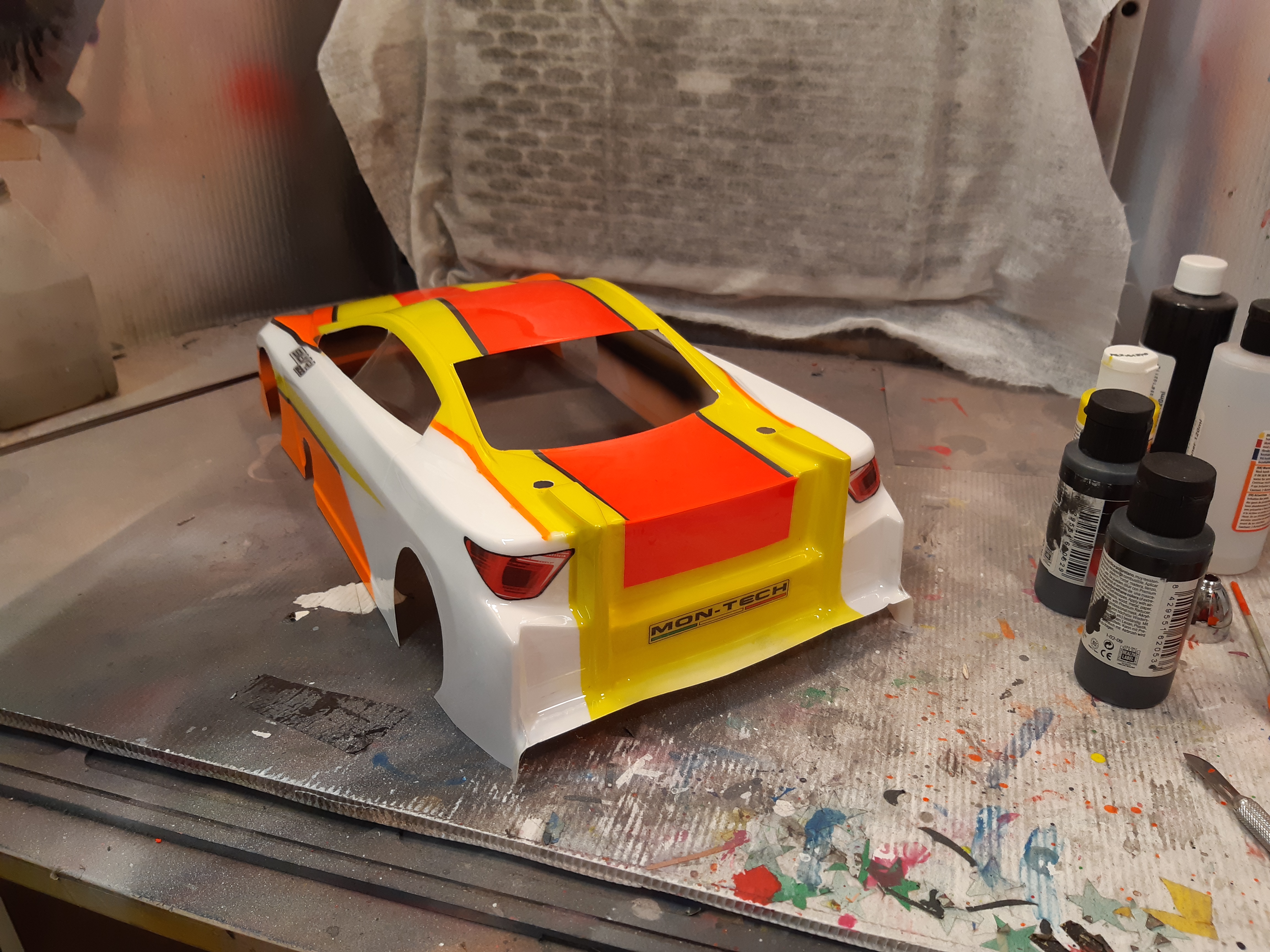 Täysin teipattuna odottamassa maalaamoa